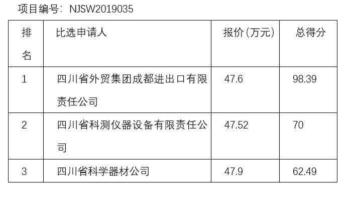 內江市污水處理有限責任公司化驗室設備采購及安裝工程中標結果公示