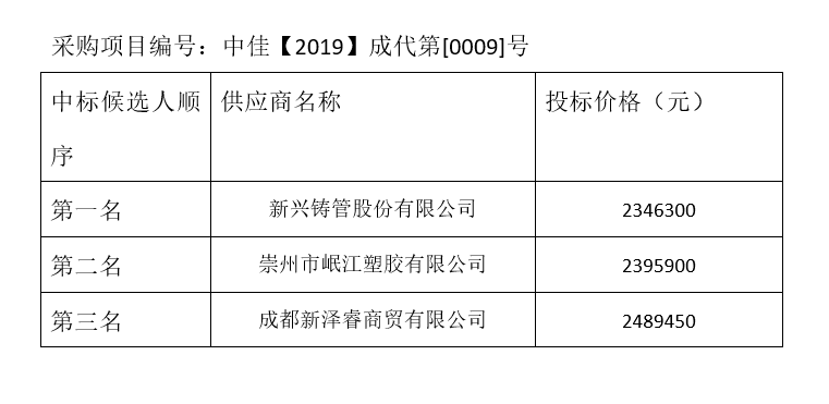 內江市水務(wù)有限責任公司球墨鑄鐵管管材及管件采購項目評標結果公示