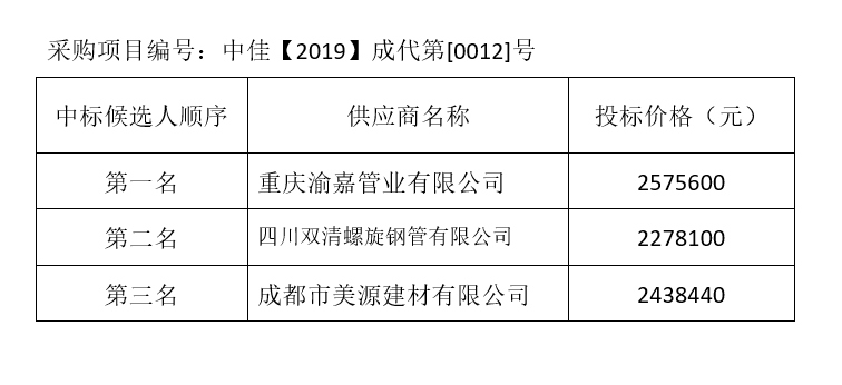 內江市水務(wù)有限責任公司螺旋鋼管管材及管件采購項目評標結果公示