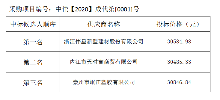 內江市水務(wù)有限責任公司PE給水管及管件采購項目評標結果公示