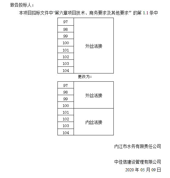 內江市水務(wù)有限責任公司PPR給水管及管件采購項目更正公告