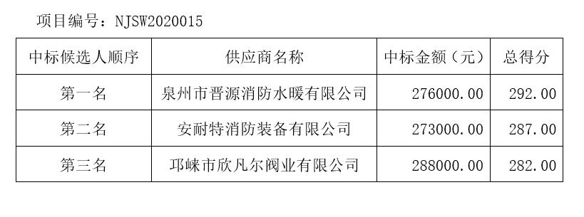 內江市水務(wù)有限責任公司消火栓采購項目評標結果公示