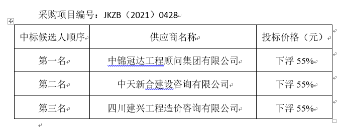 內江市應急供水搶險基地工程項目造價(jià)咨詢(xún)(編制)服務(wù)標段評標結果公示