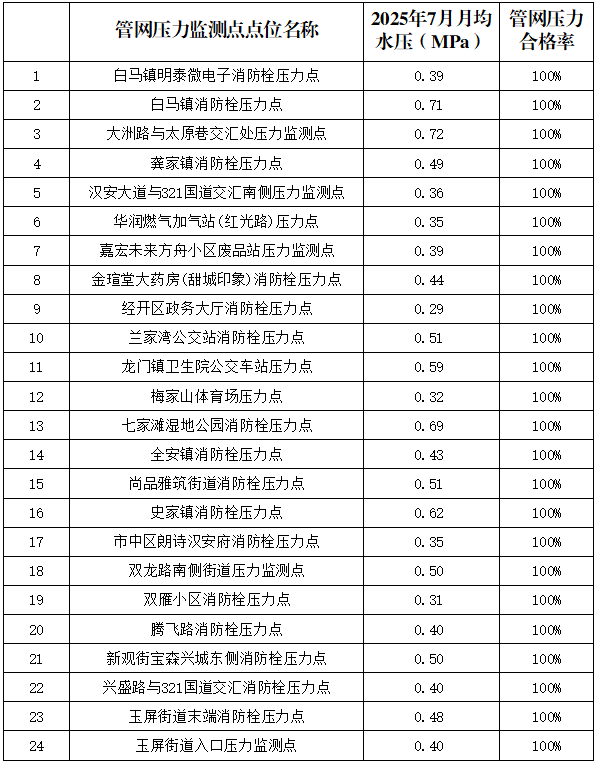 內江市水務(wù)有限責任公司2025年7月管網(wǎng)壓力月報