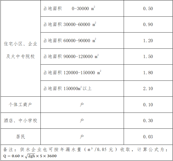 內江市水務(wù)有限責任公司探漏服務(wù)收費標準